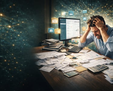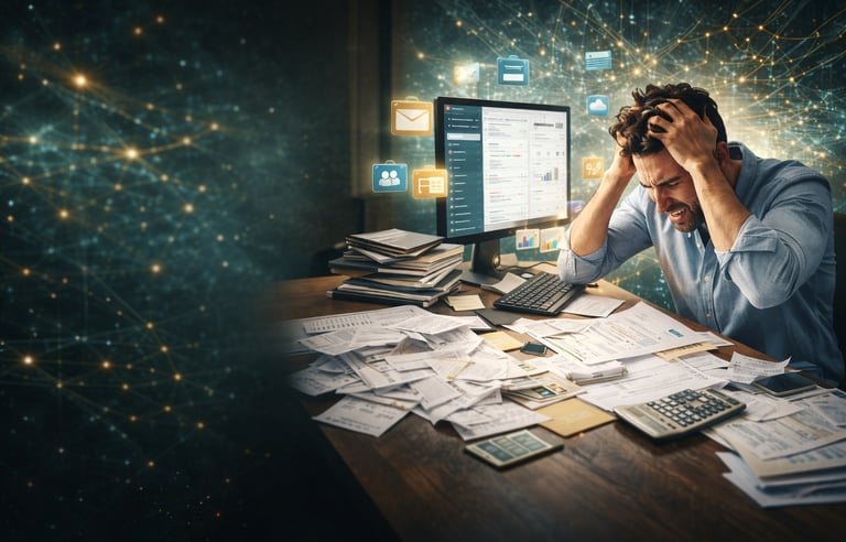 El síntoma: La fricción digital. Tus herramientas digitales no se hablan entre sí; tú eres el puente que copia y pega datos manualmente. Esta falta de estructura hace que crecer sea doloroso: si hoy llegaran diez clientes nuevos, tu sistema colapsaría.
